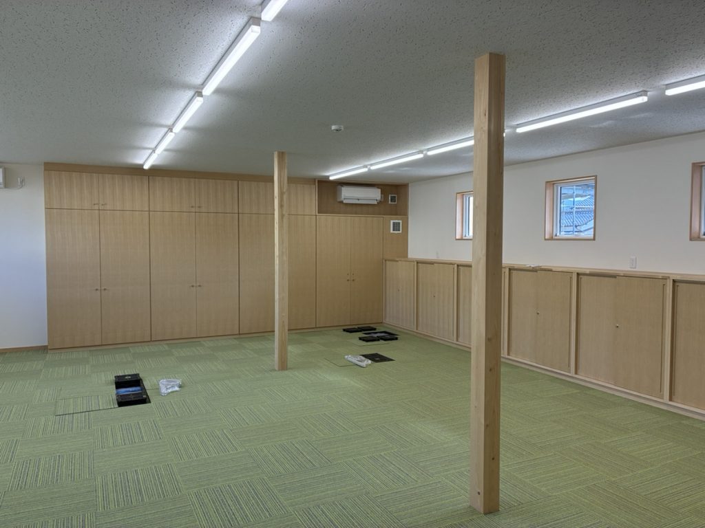 事務室です。床のタイルカーペットがとてもよいアクセントになり、和やかな雰囲気に仕上がりました。