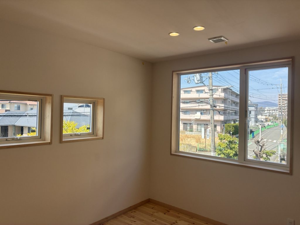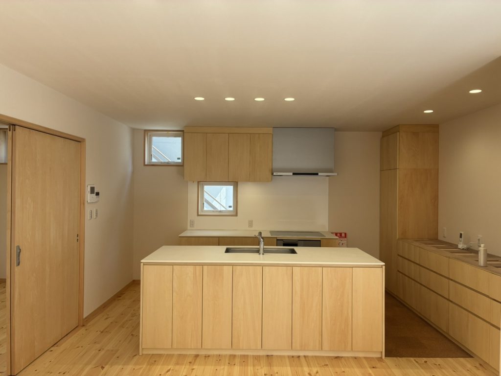木造2階建、高気密高断熱工法に家相の考えを取り入れ、無垢材や漆喰など天然素材をふんだんに使用。