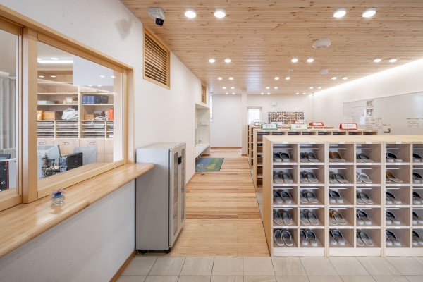下足箱も園児、先生、来客の靴とスリッパがしっかり置けるように数を確認しながら家具工事にて製作しました。