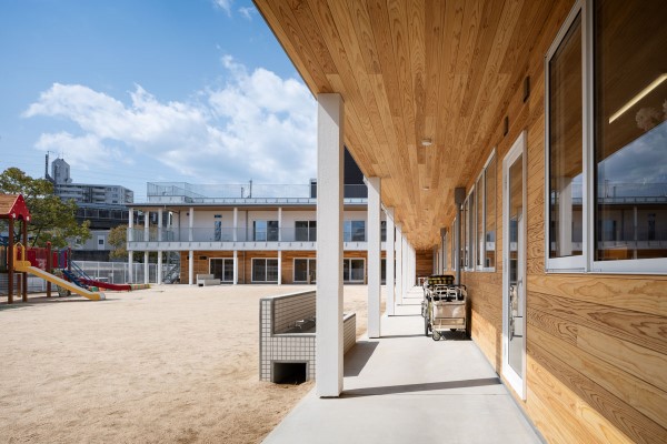 在来木造構造で、木造耐火構造でできうる限りの高気密高断熱化を図った保育園となっています。