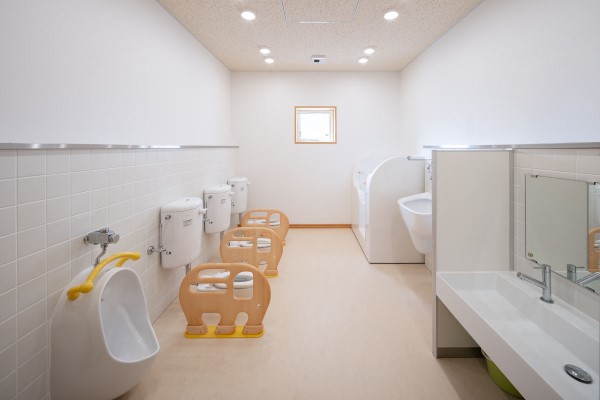 1歳児、2歳児室のトイレにはブースを設けず、広く使えるように計画しています。