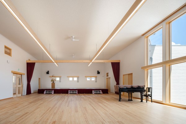 短編方向で壁芯約10mとなり、園児が走り回っても十分な空間となっています。