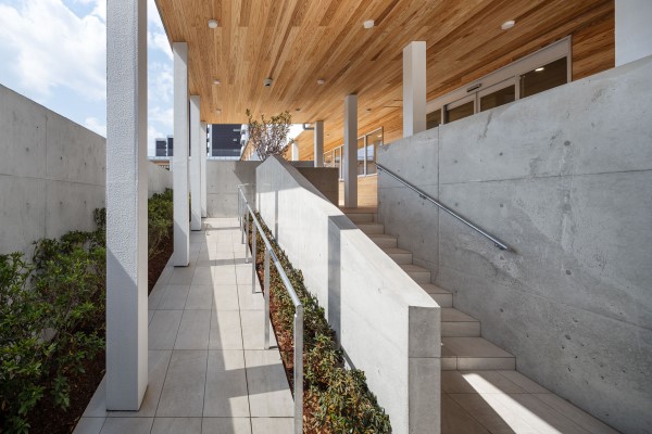 バルコニー下の外廊下を通れば雨に塗れずに園庭の反対側まで行くことができます。
