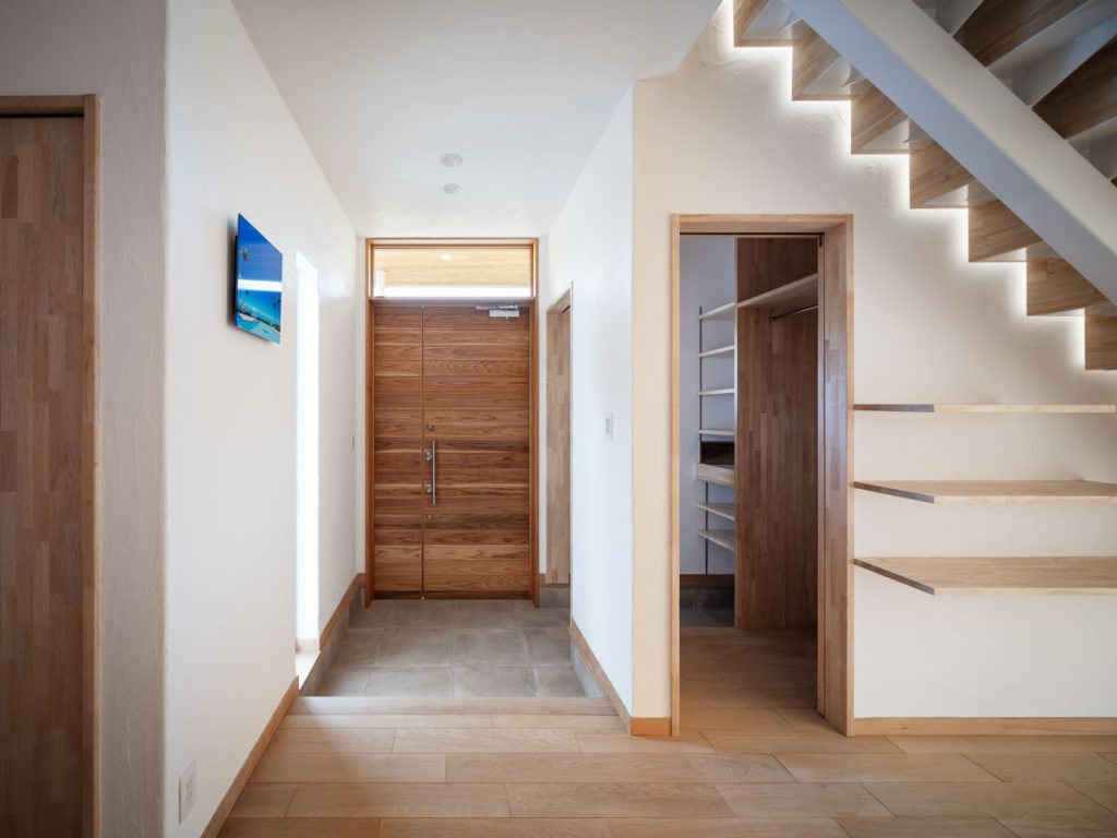 無添加住宅さんとのコラボのため、内装・外装ともに漆喰や無垢材、石材と本物の素材を使用した建物となっています。