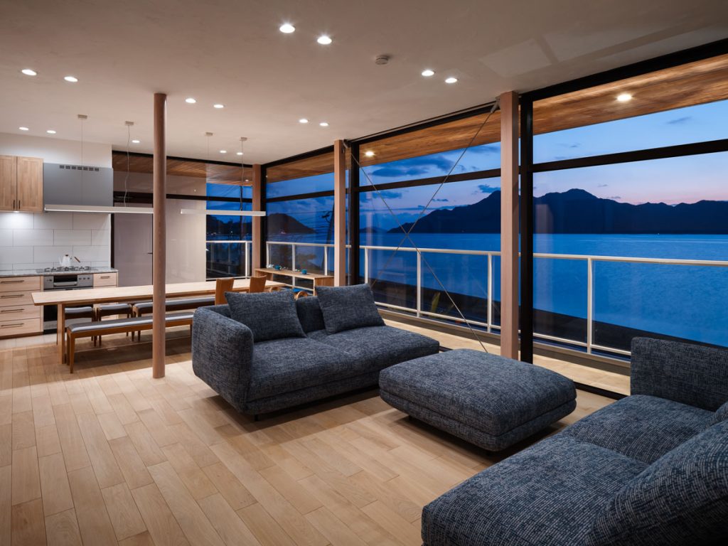 開放感があり、瀬戸内海が一望できる2階LDKと1階では3家族が泊まれる部屋を確保。